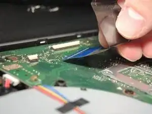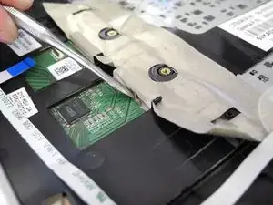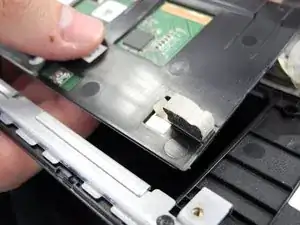 Начните отгибать пластырь-заплатку. При необходимости используйте пластиковую лопаточку. Это позволит освободить трекпад.