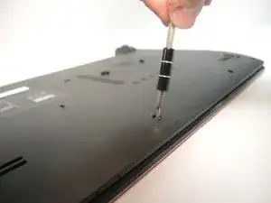 Переверните ноутбук и извлеките аккумулятор для удобства при замене.