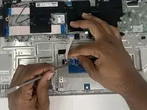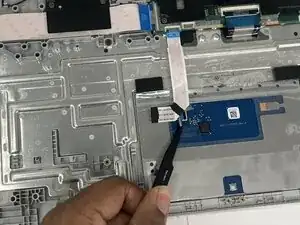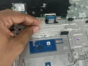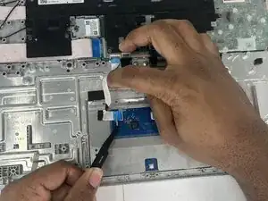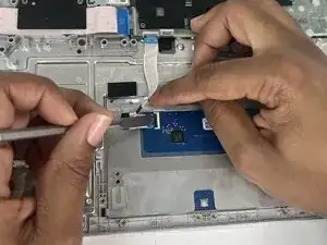 Используйте лопатку, чтобы поднять чёрный фиксатор ZIF на ленточном кабеле тачпада.