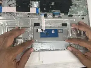 Возьмитесь за трекпад за нижний край и потяните его вверх и от себя, чтобы вынуть из ноутбука.