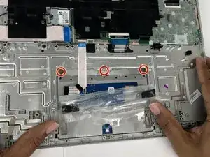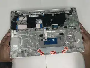 Используйте отвертку Phillips #00, чтобы вынуть три винта длиной 2,2 мм, фиксирующие трекпад.