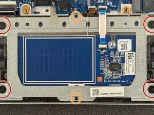Удалите 2 серебряные ленты, прикрепленные к рамке трекпада.