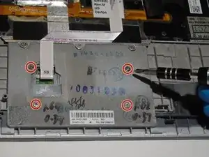 Проследите ленточный кабель, идущий от левого динамика к материнской плате.