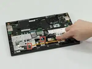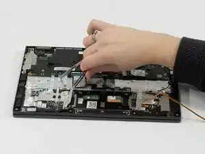 - Примечание: Поскольку трекпад находится под аккумулятором, для выполнения ремонта потребуется снять дополнительные компоненты. Работайте медленно и аккуратно, чтобы не повредить внутренние детали или разъёмы.