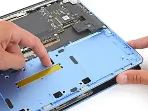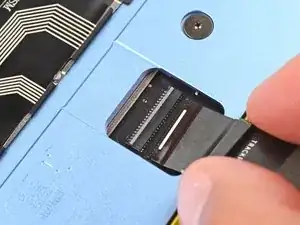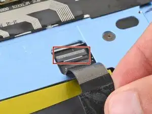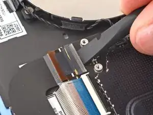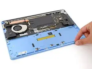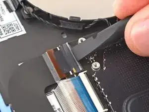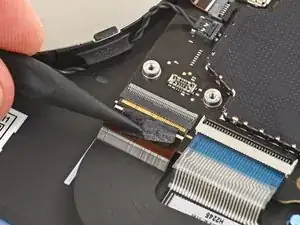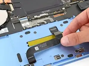 Используйте пальцы, чтобы отогнуть кабель трекпада в сторону нижней части ноутбука, чтобы получить доступ к ZIF‑разъему на трекпаде.