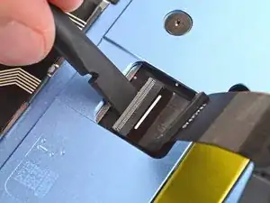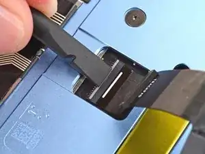 Используйте плоский конец лопатки, чтобы поднять фиксирующую планку ZIF‑разъёма кабеля трекпада.
