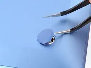 Снимите крышку разъёма аккумулятора пинцетом или пальцами.