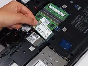 Извлеките твердотельный кэш, подтянув модуль вверх и вынув его наружу.