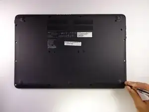 Переверните Chromebook на его заднюю сторону и отвинтите следующие винты Phillips #1: