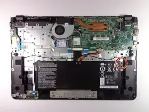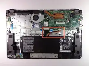 Используя лопатку, осторожно отключите радужные провода, подключенные к верхней части батареи.