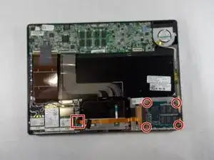Используя крестовую отвёртку Phillips №0, выкрутите четыре винта 2 мм, закрепляющие SSD на материнской плате.