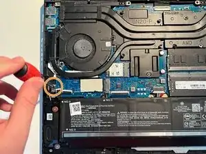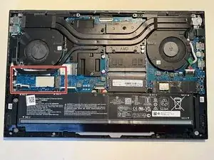 Найдите запасной слот для накопителя слева на ноутбуке.