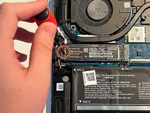 Закрутите накопитель в слоте винтом, который вы отложили на шаге 5.