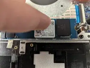 Используйте отвертку Phillips #00, чтобы удалить винт из SSD.