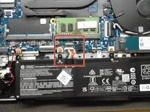 Отключите разъем аккумулятора от материнской платы, используя боковые вкладки на разъеме.