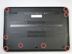 Найдите восемь винтов длиной 7 мм на нижней стороне ноутбука.