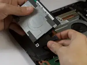 Поднимите жесткий диск немного и отключите черную шлейфовую ленту, соединяющую жесткий диск с компьютером.