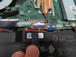 Используйте пластиковую лопатку, чтобы отсоединить разъём батареи от материнской платы.