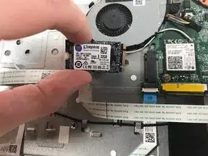 Вытащите твердотельный накопитель из разъема в том направлении, под которым он был установлен.