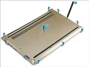 С помощью шила подденьте края задней крышки со всех сторон [1].