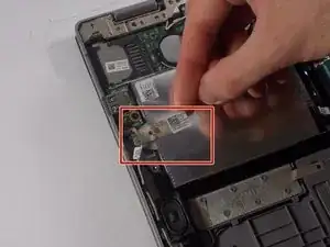 Отсоедините провод SSD от разъёма аккумулятора, отсоединив разъём.