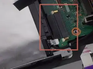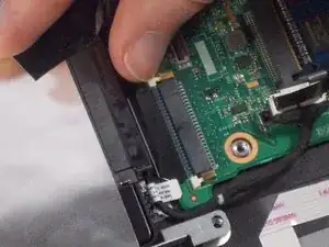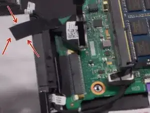 Снимите ленточный разъём, который соединяет твердотельный накопитель с материнской платой.