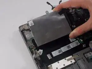 Жёсткий диск — это серебристый блок в левой средней части над аккумулятором.