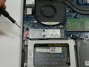Используя ту же отвертку Phillips #2, открутите и снимите один винт вафельного типа размером 2,0 мм из крепления SSD.
