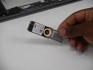 Аккуратно вытащите SSD прямо из слота M.2, сдвигая его от разъема, чтобы полностью отключить.