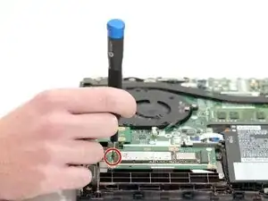 Удалите винт длиной 2.5 мм с помощью отвертки Phillips #00 из SSD.