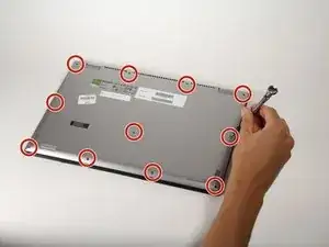 Отверткой Phillips #00 отвинтите одиннадцать винтов длиной 1/4" на задней крышке ноутбука.