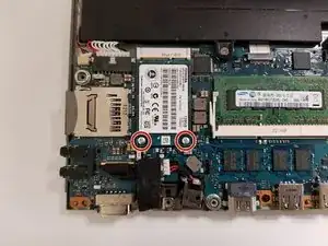 Открутите два винта длиной 1 мм, расположенных в верхней части твердотельного накопителя, с помощью отвертки Phillips #1.