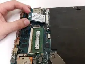 Найдите твердотельный накопитель под батареей и рядом с оперативной памятью.
