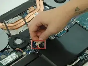 Поднимите батарею вверх, чтобы извлечь её из корпуса ноутбука.