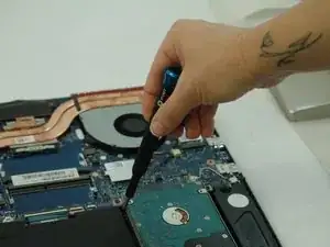 Используя крестовую отвертку №1, открутите винт длиной 4 мм, фиксирующий SSD.