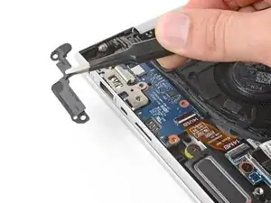 Используйте крестовую отвёртку #1, чтобы выкрутить три винта длиной 4.5 мм, фиксирующие плату разъёма и её кронштейны.