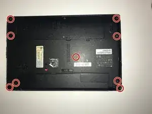 Удалите все девять винтов Phillips #00 длиной 6,0 мм с задней части ноутбука.