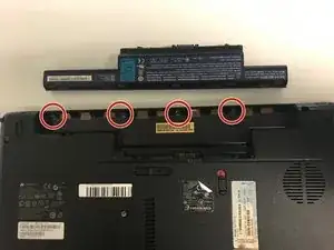 Удалите четыре винта Phillips #0 длиной 3,0 мм из отсека батареи.