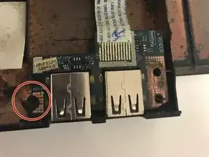 Удалите винт Phillips #00 длиной 6,0 мм, удерживающий USB-порт.