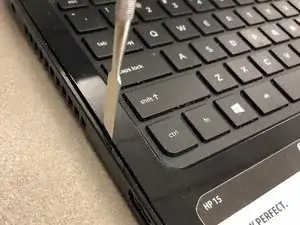 Используя лопатку, подденьте по краям клавиатуру до освобождения всех защёлок и пока она не ослабнет в корпусе.