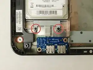 Снимите один винт, удерживающий модуль USB-портов и микросхему в корпусе компьютера.