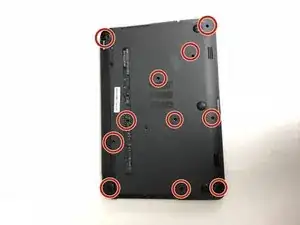 Снимите 11 маленьких винтов на нижней части компьютера, показанных на изображении.