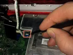 Отключите мелкий шлейф, подняв крышку и вытащив его из разъема материнской платы к батарее с помощью лопатки.