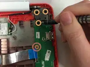 Удалите один винт по 3 мм с левой и нижней стороны USB-порта с помощью отвертки Philips #1.