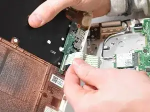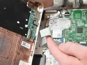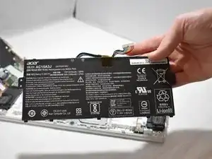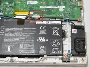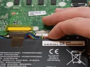 Аккуратно извлеките шлейф, подключённый к материнской плате, который идёт к батарее.