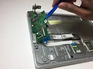 Подденьте защёлку ZIF, удерживающую более широкий ленточный кабель, с помощью лопатки для вскрытия.