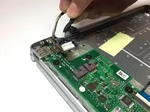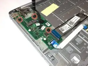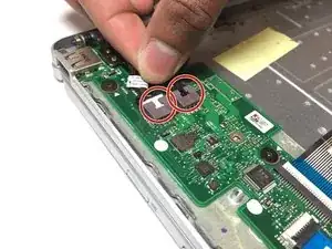USB-порт прикреплён к этой плате, которую вы только что сняли. Чтобы заменить USB-порт на этой плате, перейдите на страницу Как припаивать и выпаивать соединения.