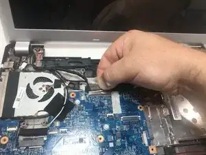 Снимите ленту, фиксирующую кабель дисплея к материнской плате.