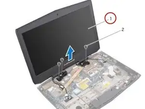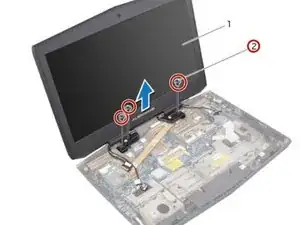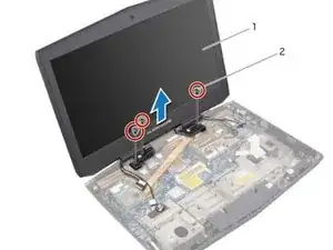 Удалите винты, которые крепят узел дисплея к основанию компьютера.