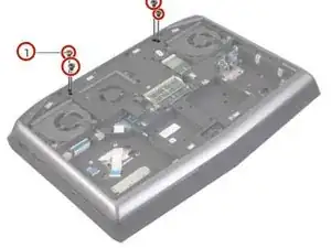 Замените винты, которые крепят узел дисплея к основанию компьютера.